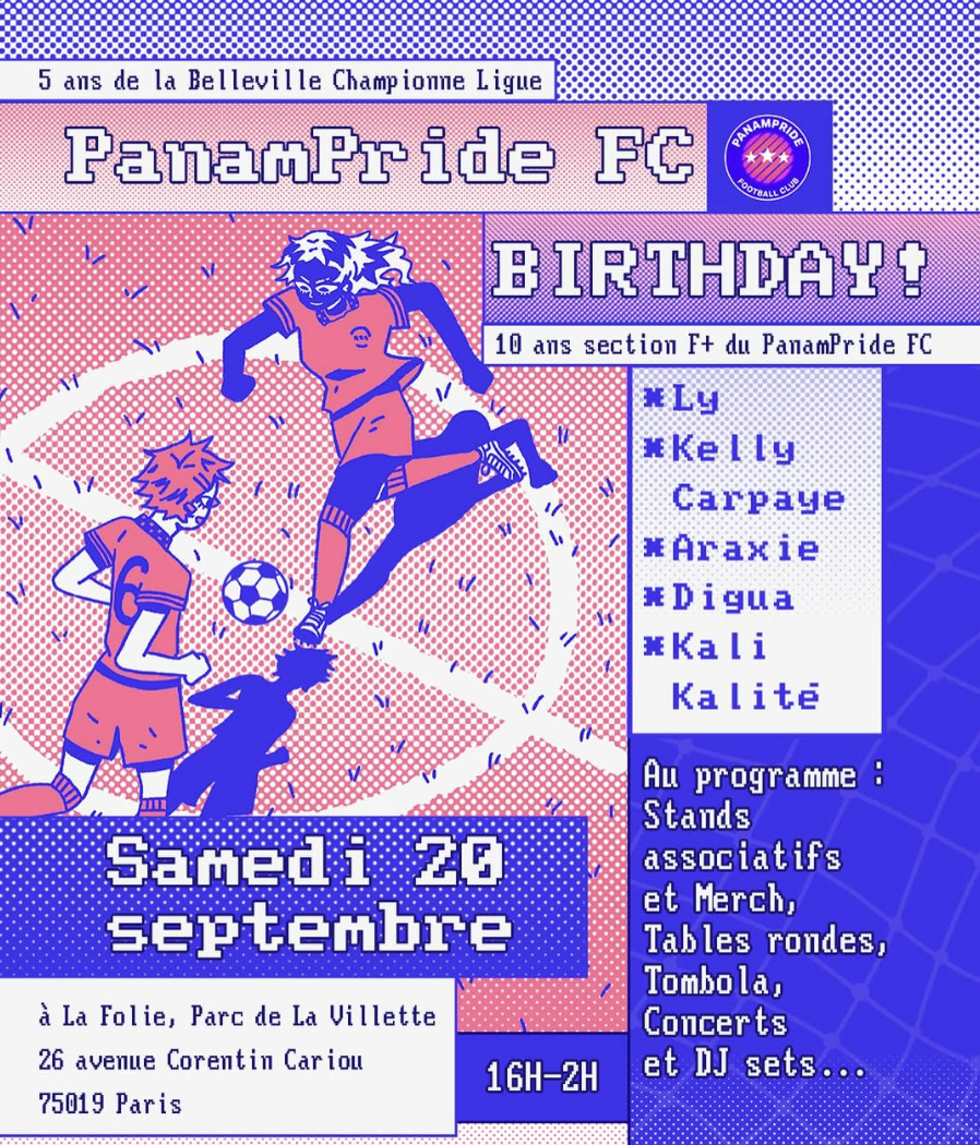 PanamPride FC souffle ses 10 bougies, et la Belleville Championne Ligue ses 5. Comme toujours, en collectif, en musique, et en fête. La Folie devient terrain de jeu inclusif, où le sport, la mémoire et le dancefloor se rencontrent.