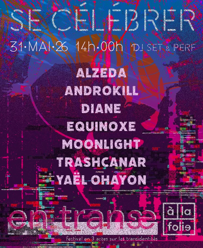 EN TRANS.E : se célébrer – Acte III ✨ 31.05.26 / 14h – minuit Entrée gratuite Donation libre sur place et possible en amont sur Hello Asso pour soutenir le projet, l’association et les artistes trans ! En Trans·e est un micro-festival où l’on explore, chérit et célèbre les transidentités par l’image, le son, l’installation, l’écriture et la discussion. Pour sa deuxième édition, le festival se décline en trois événements, sur 3 jours, selon 3 parties thématiques :